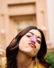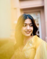 You are viewing a picture of Charming Rashmika Mandanna in a Beige Embellished Saree with a Bustier Blouse Photos 02 in KollywoodZone.com Photo Gallery.
