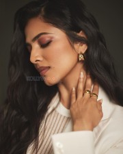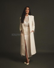 You are viewing an image of Classy Malavika Mohanan in an Off White Long Coat and Thigh Slit Skirt Photos 04 in KollywoodZone.com Photo Gallery