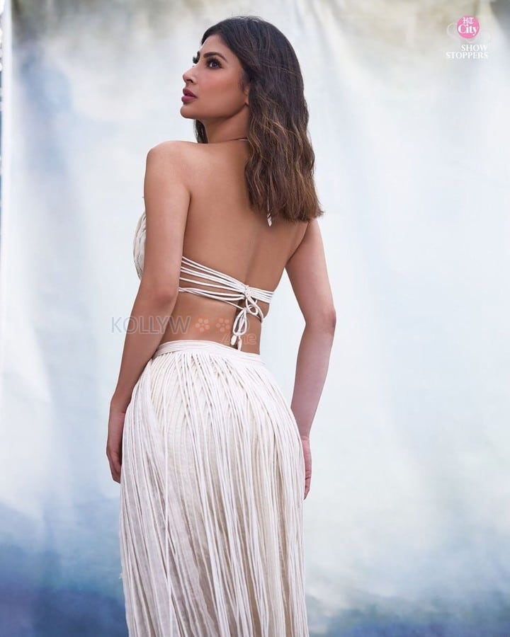 You are viewing a picture of Dazzling Mouni Roy in a White Corded Drape Gown Photos 02 in KollywoodZone.com Photo Gallery.