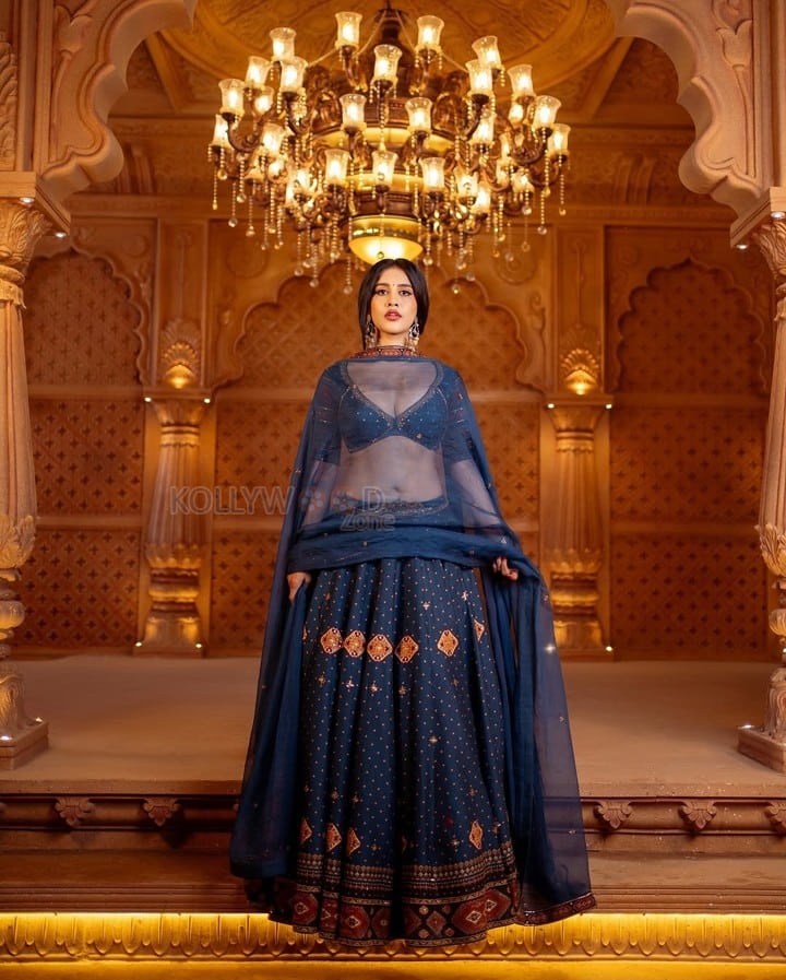 You are viewing an image of Dazzling Nabha Natesh in a Royal Blue Embroidered Lehenga Photos 06 in KollywoodZone.com Photo Gallery