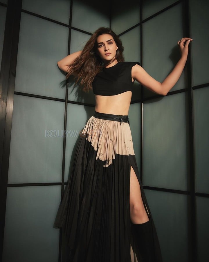You are viewing an image of Do Patti Actress Kriti Sanon in a Black Crop Top and Black Cream Skirt Pictures 04 in KollywoodZone.com Photo Gallery