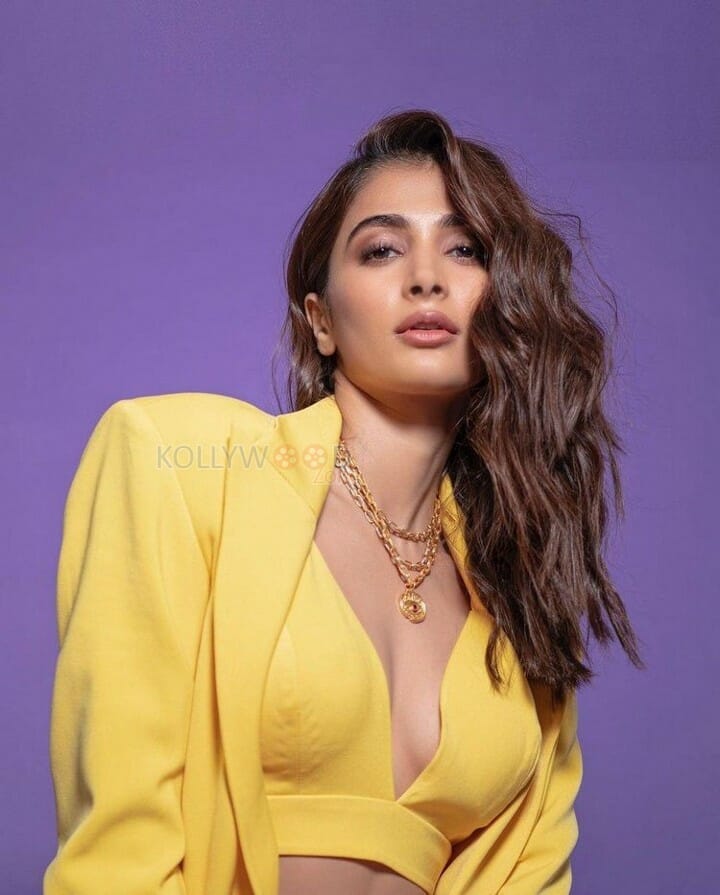 You are viewing a picture of Dusky Pooja Hedge in a Yellow Dress Pictures 02 in KollywoodZone.com Photo Gallery.