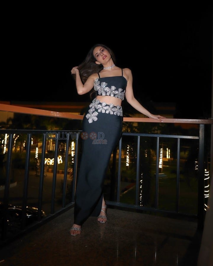 You are viewing an image of Elegant Amyra Dastur in a Crystal Embellished Black Fitted Crop Top with a High Waisted Skirt Photos 02 in KollywoodZone.com Photo Gallery