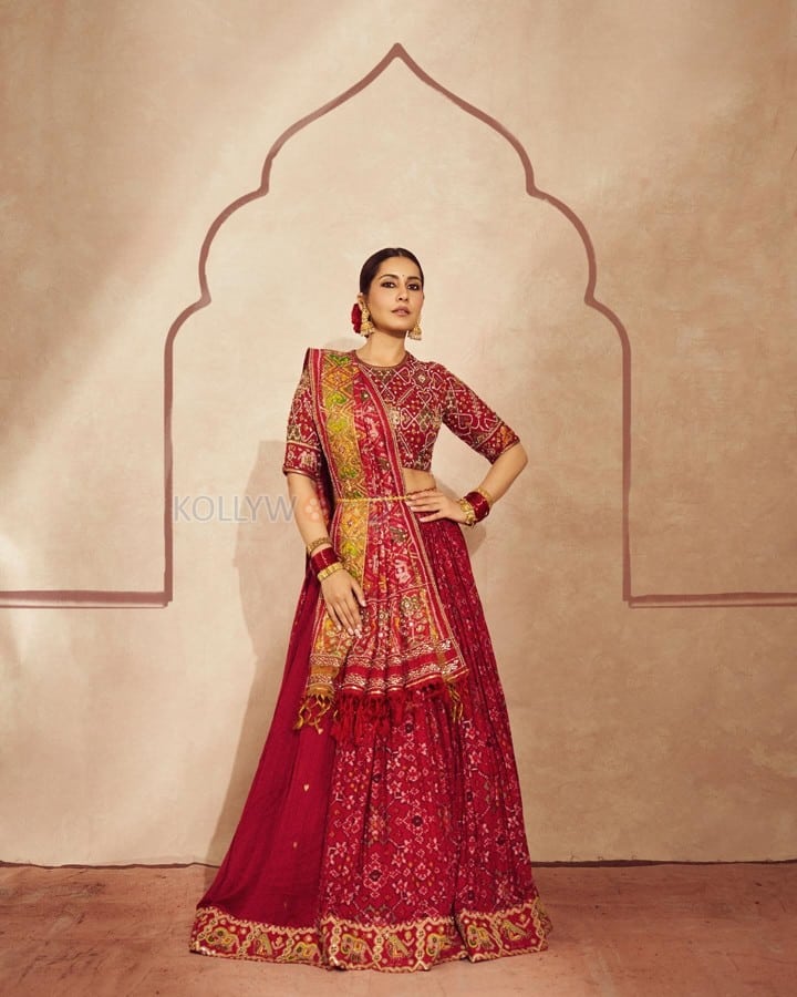 You are viewing a picture of Elegant and Classy Raashi Khanna in a Embellished Maroon Lehenga Photos 02 in KollywoodZone.com Photo Gallery.