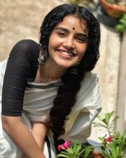 You are viewing a picture of Elegant Anupama Parameswaran in a Blue and Black Printed Saree Photos 06 in KollywoodZone.com Photo Gallery.