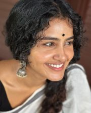 You are viewing an image of Elegant Anupama Parameswaran in a Blue and Black Printed Saree Photos 06 in KollywoodZone.com Photo Gallery