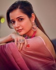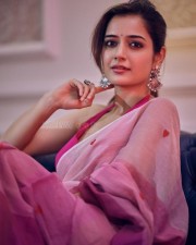 You are viewing an image of Elegant Ashika Ranganath in a Pink Saree with Red Heart Motifs Photoshoot Pictures 08 in KollywoodZone.com Photo Gallery