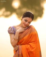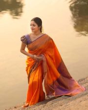 You are viewing an image of Gorgeous Janani Iyer in an Orange Silk Saree Photos 01 in KollywoodZone.com Photo Gallery