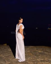You are viewing a picture of Gorgeous Janhvi Kapoor in an Embroidered Butterfly Netted Baby Pink Saree with a Green Pallu and Infinity Hemline Blouse Photos 08 in KollywoodZone.com Photo Gallery.