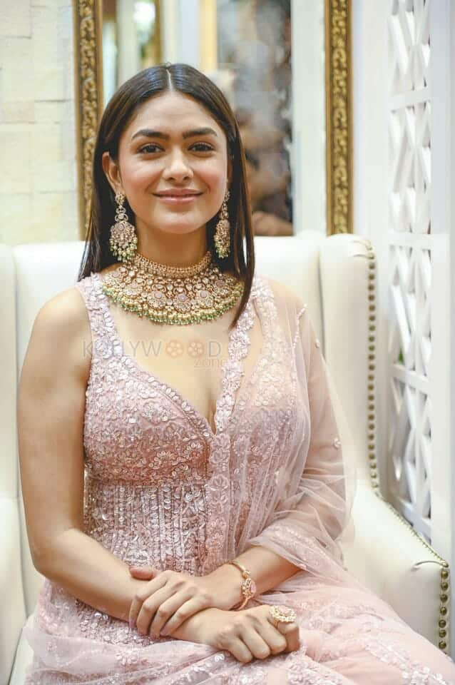 You are viewing a picture of Gorgeous Mrunal Thakur in a Blush Pink Ghagra Set Photos 04 in KollywoodZone.com Photo Gallery.