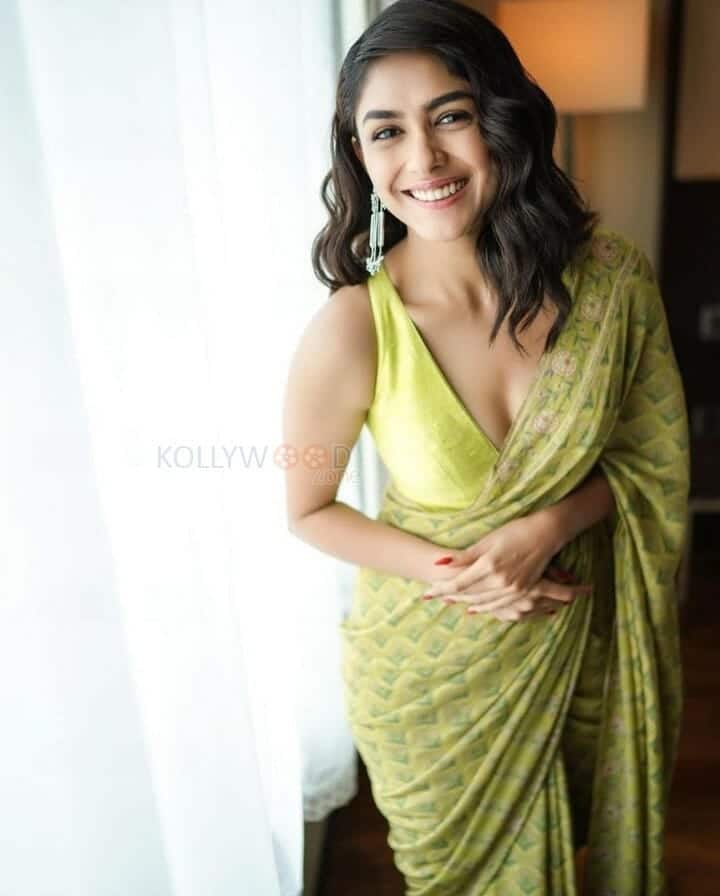 You are viewing an image of Gorgeous Mrunal Thakur in a green Anita Dongre Saree Photos 01 in KollywoodZone.com Photo Gallery