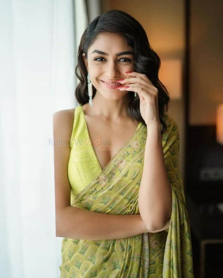 You are viewing an image of Gorgeous Mrunal Thakur in a green Anita Dongre Saree Photos 02 in KollywoodZone.com Photo Gallery