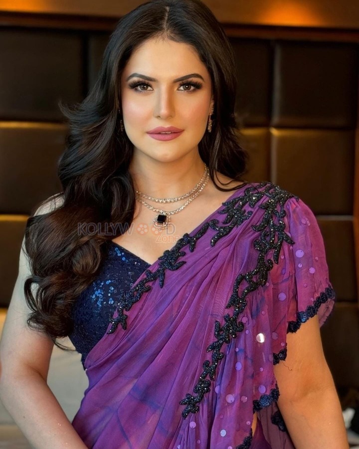 You are viewing an image of Gorgeous Zareen Khan in a Purple Saree with a Black Sleeveless Blouse Photos 06 in KollywoodZone.com Photo Gallery