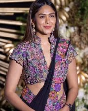 Beautiful Mrunal Thakur in a Black Georgette Saree with a Jacket Style Silk Blouse with a Deep V Neckline Pictures 03