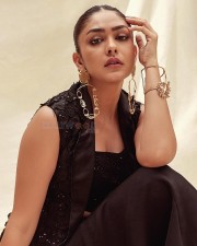 Beautiful Mrunal Thakur in a Georgette Three Piece Set with a Crop Top Blazer and Palazzo Pant Photos 02