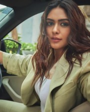 Beautiful Mrunal Thakur in a Georgette Three Piece Set with a Crop Top Blazer and Palazzo Pant Photos 06