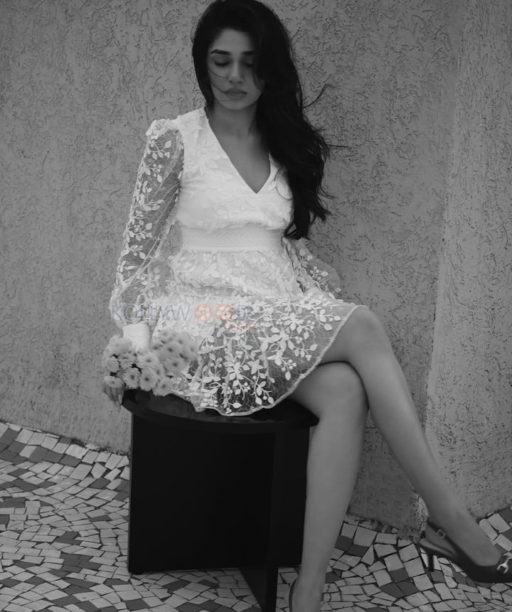 You are viewing an image of Hot Krithi Shetty in a Floral White Lace Mini Dress Photos 02 in KollywoodZone.com Photo Gallery