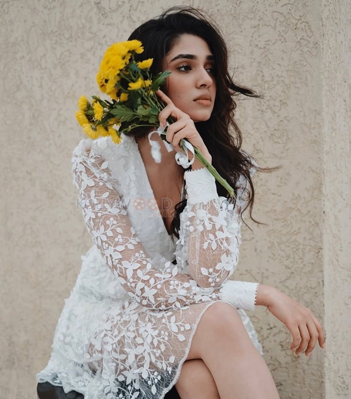 You are viewing an image of Hot Krithi Shetty in a Floral White Lace Mini Dress Photos 08 in KollywoodZone.com Photo Gallery