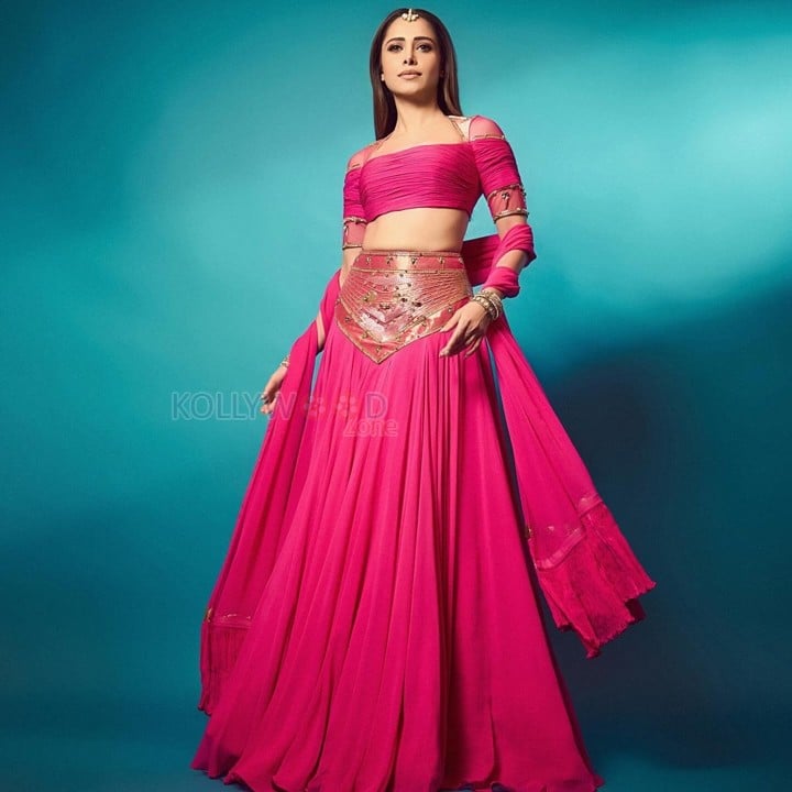 You are viewing an image of Hot Nushrratt Bharuccha in a Manish Gharat Pink Chiffon Lehenga Photos 02 in KollywoodZone.com Photo Gallery