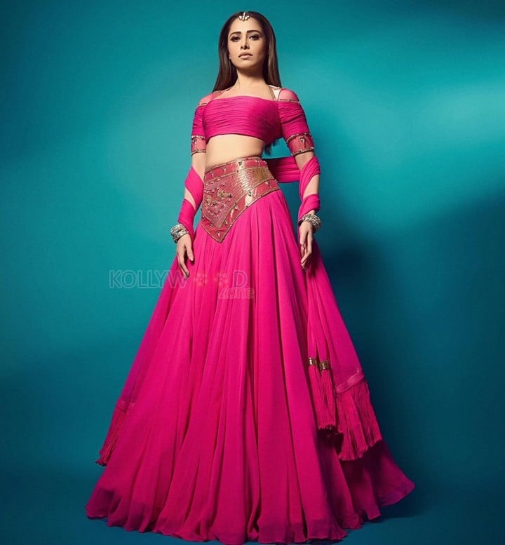 You are viewing an image of Hot Nushrratt Bharuccha in a Manish Gharat Pink Chiffon Lehenga Photos 05 in KollywoodZone.com Photo Gallery