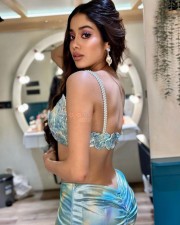 Indian Bollywood Actress Janhvi Kapoor in a Royal Blue and Hot Pink Designer Lehenga with a Blue Bustier Top Photos 09