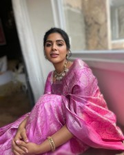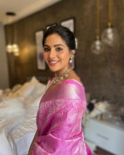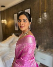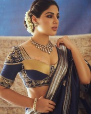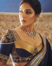 You are viewing a picture of Majestic Samyuktha Menon in a Golden Saree with Matching Blouse and Pearl and Emerald Jewellery Pictures 03 in KollywoodZone.com Photo Gallery.