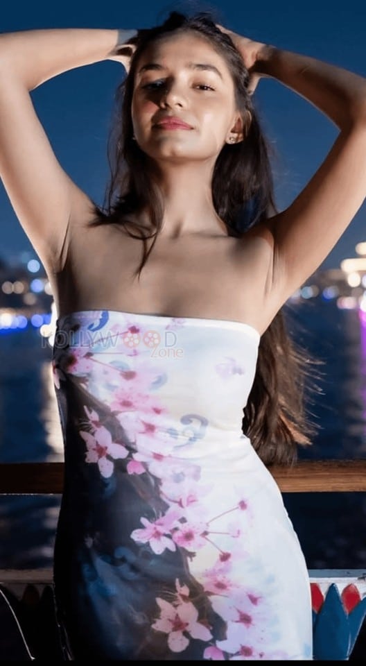 You are viewing a picture of Mesmerizing Anushka Sen in a Strapless Cherry Blossom Printed Maxi Dress Pictures 01 in KollywoodZone.com Photo Gallery.