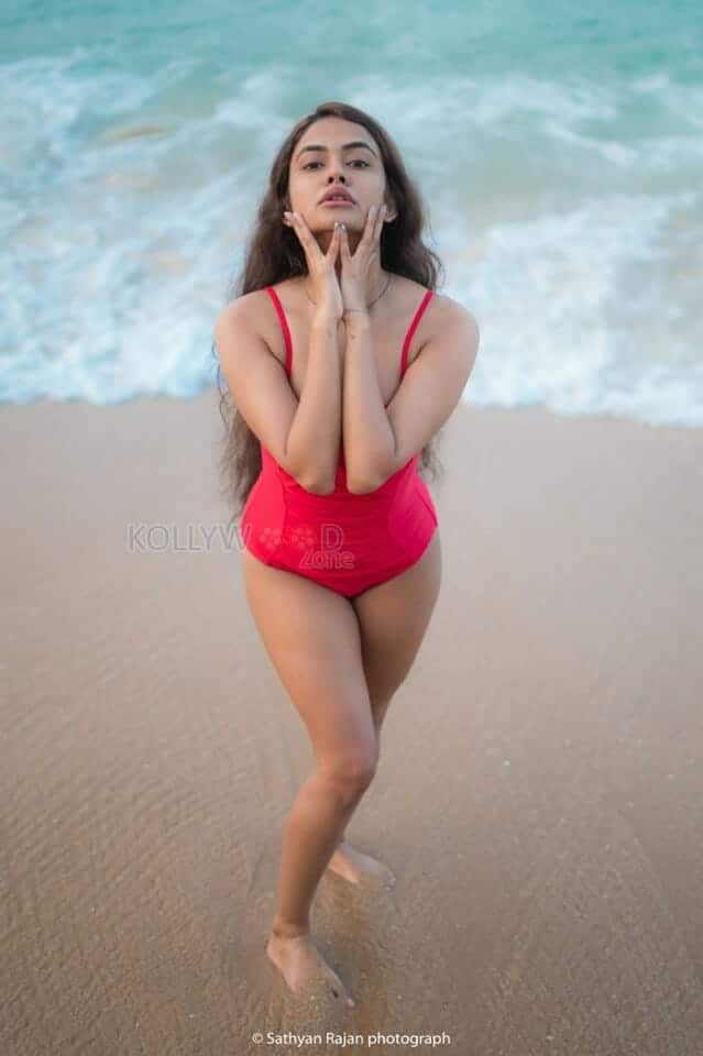 You are viewing an image of Mollywood Actress Aiswarya Suresh in Red Bikini Photoshoot Pictures 02 in KollywoodZone.com Photo Gallery