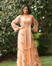 Tollywood Heroine Niddhi Agerwal in a Sequin Rust Saree with an Embroidered Sleeveless Saree Photos 04