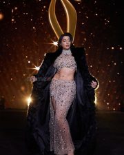 Hot Dancer Model Nora Fatehi in a Black Sequined Crop Top and Mini Skirt with a Vibrant Pink Feather Jacket Pictures 04