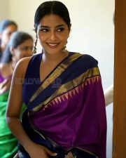 You are viewing a picture of Regal Beauty Aishwarya Lekshmi in a Black Artistic Saree with a Halter Neck Sleeveless Blouse Pictures 04 in KollywoodZone.com Photo Gallery.