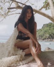 Kanchana 4 Actress Pooja Hegde in a Red and Gold Brocade Saree with a Matching Embroidered Corset Style Blouse Photos 08