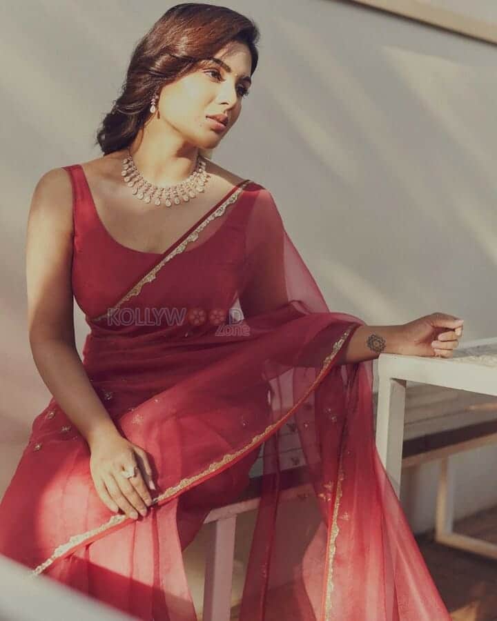 You are viewing an image of Samyuktha Menon Sexy in Red Saree Photos 03 in KollywoodZone.com Photo Gallery