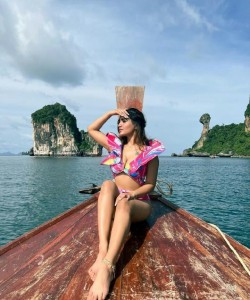Sparkling Mallu Babe Saniya Iyappan in a Blue Saree with a Sleeveless Spaghetti Strap Bralette Photos 04