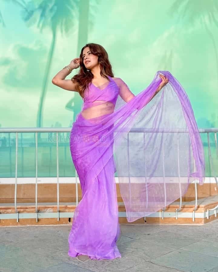 You are viewing an image of Sexy Actress Avneet Kaur in a Transparent Purple Saree with a Halter Neck Blouse Pictures 06 in KollywoodZone.com Photo Gallery