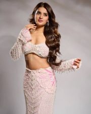 Tempting Nidhhi Agerwal in a Light Pink Lehenga with a Bustier Style Off Shoulder Top with Matching Mermaid Skirt Photos 02