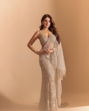 Glittering Heroine Nidhhi Agerwal in an Embellished Pre Draped Saree with a Sleeveless Deep V Neck Bralette Blouse Photos 01