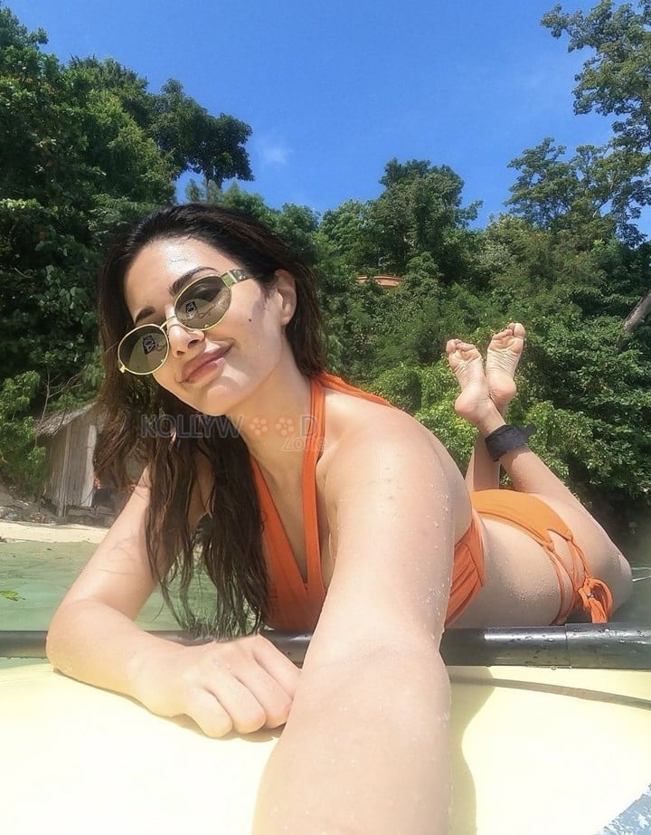 You are viewing an image of Sexy Amyra Dastur in an Orange Bikini Holiday Photos 03 in KollywoodZone.com Photo Gallery