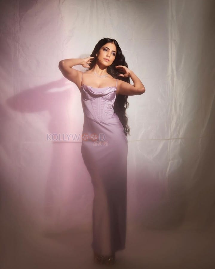 You are viewing an image of Sexy Malavika Mohanan in a Purple Corset Dress Photos 05 in KollywoodZone.com Photo Gallery