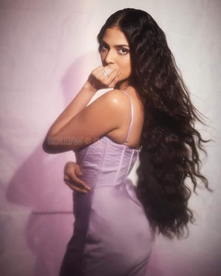 You are viewing a picture of Sexy Malavika Mohanan in a Purple Corset Dress Photos 09 in KollywoodZone.com Photo Gallery.