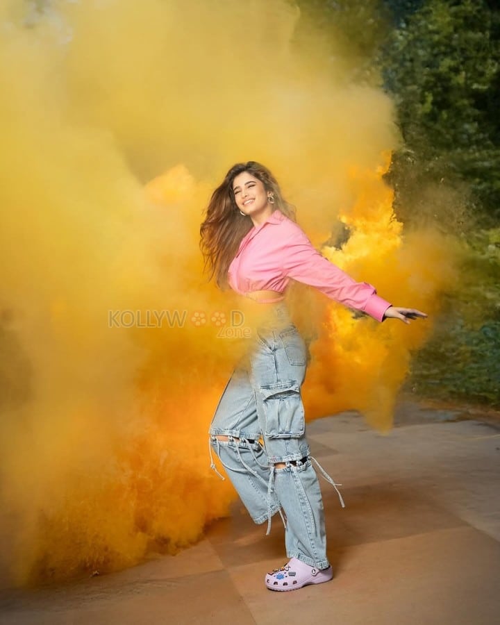 You are viewing an image of Sexy Rasha Thadani in a Pink Knot Shirt and Torn Denim Pants for Holi Celebration Photos 08 in KollywoodZone.com Photo Gallery