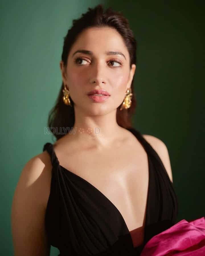 You are viewing an image of Sexy Tamanna in a Deep Cut Black Rose Dress Photos 04 in KollywoodZone.com Photo Gallery