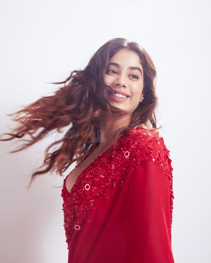You are viewing an image of Smoking Hot Janhvi Kapoor in a Red Saree with a Bejewelled Blouse Photos 03 in KollywoodZone.com Photo Gallery