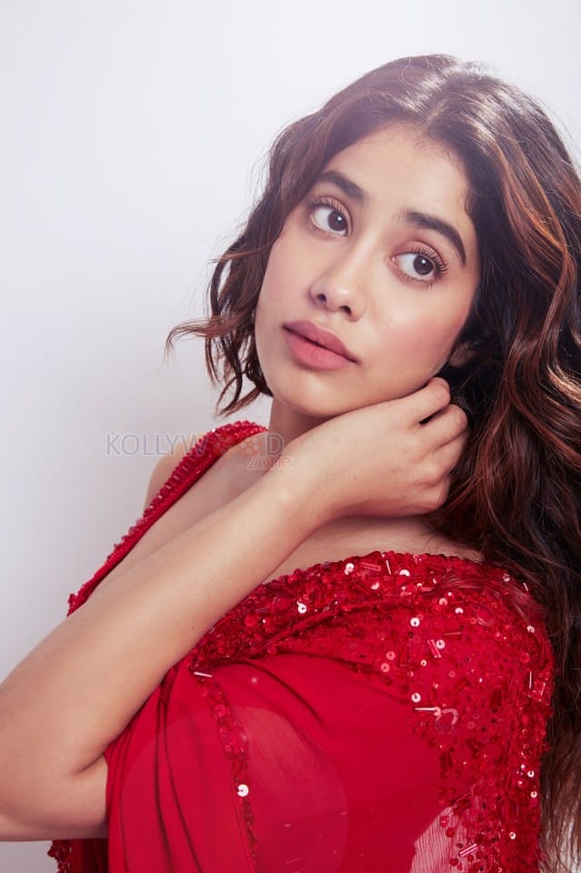 You are viewing an image of Smoking Hot Janhvi Kapoor in a Red Saree with a Bejewelled Blouse Photos 04 in KollywoodZone.com Photo Gallery