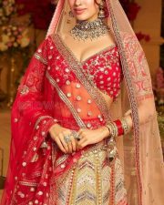 Attractive Janhvi Kapoor in a Traditional Radiant Red and Mustard Bridal Art Silk Lehenga Pictures 02