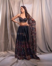 Akhanda 2 Actress Pragya Jaiswal in a Midnight Blue Floral Lehenga with a Sleeveless Blouse Photos 06