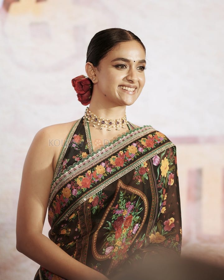 You are viewing an image of Stunning Keerthy Suresh in a Floral Printed Saree with Backless Blouse Photos 04 in KollywoodZone.com Photo Gallery