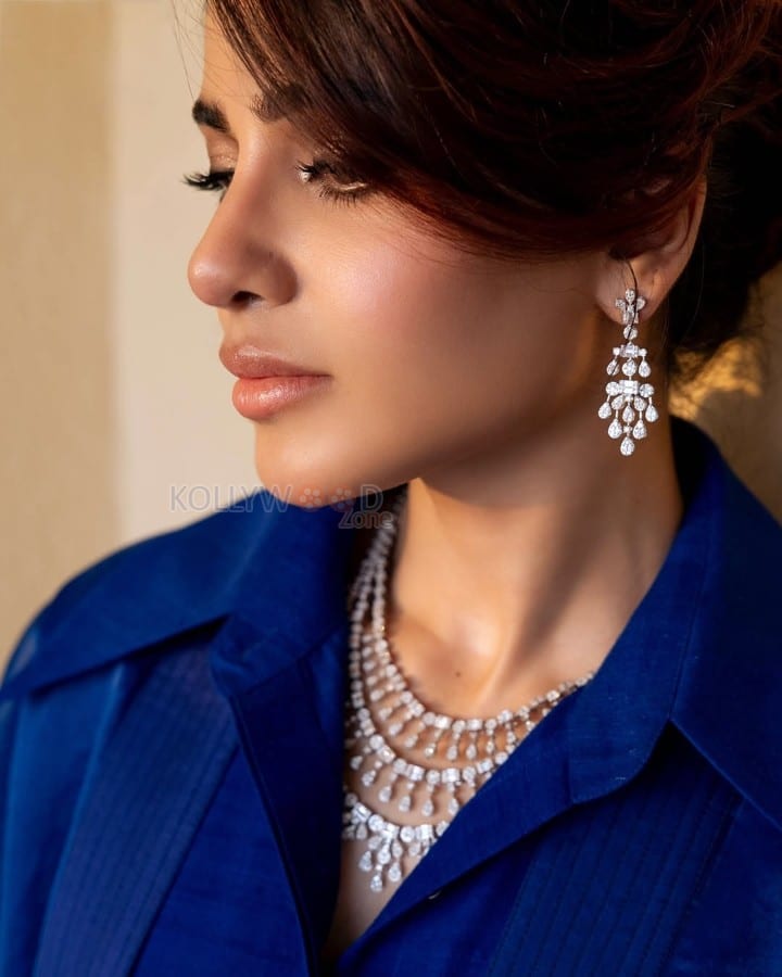 You are viewing a picture of Stunning Samantha Ruth Prabhu in a Kimono Style Electric Blue Jumpsuit Pictures 03 in KollywoodZone.com Photo Gallery.