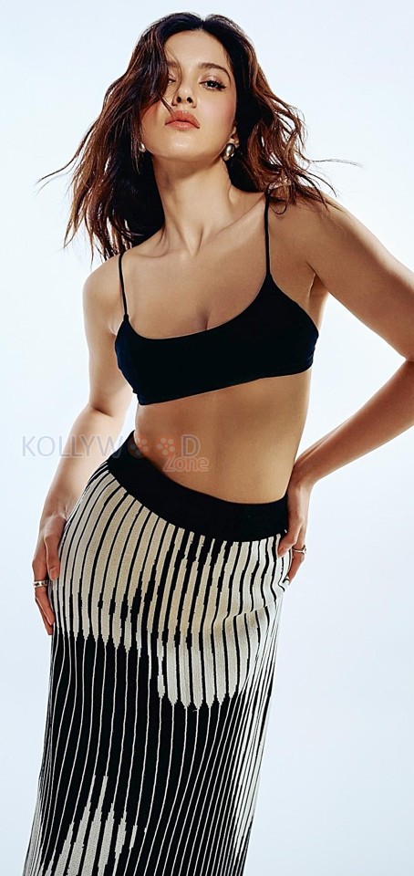 You are viewing an image of Stunning Shanaya Kapoor in a Black Bralette with a Black and White Printed Skirt Pictures 03 in KollywoodZone.com Photo Gallery