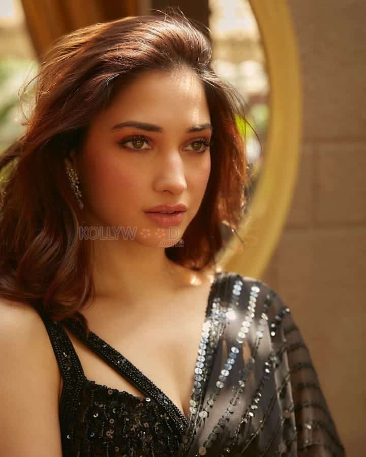 You are viewing an image of Stunning Tamannaah Bhatia in a Black Sequined Saree Photos 04 in KollywoodZone.com Photo Gallery